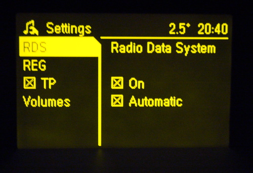 A jsme v menu nastavování RDS - viz. zaškrtlé okna