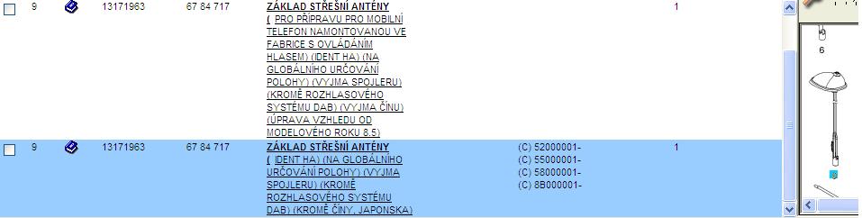 Anténa je to tato s indexem HA. Pokoušel jsem se to hledat v EPC, ale našel jsem jen toto