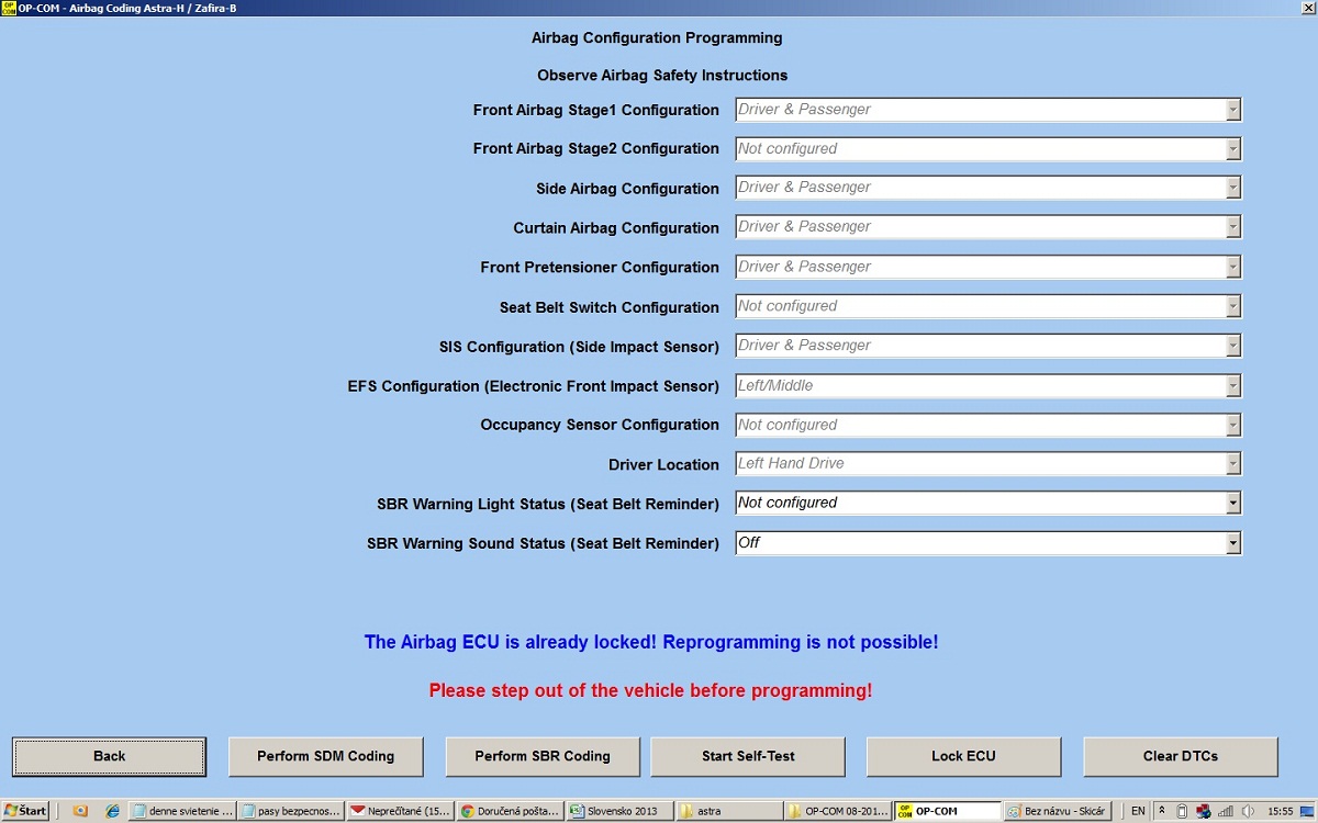 Dalsia zahada, chcel som si aktivovat zvukovu signalizaciu nezapnutych bezpecnostnych pasov, opcom vypisal ze je ecu locknute a ze mam z auta vystupit, to som aj spravil, nanovo pripojil a nic, neviete kde moze byt problem?