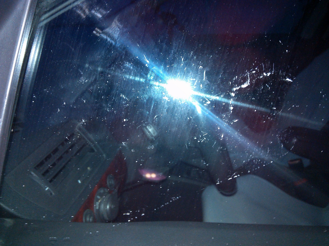 No pár cm a jen u zrcátka by to neskončilo..Byla to šlupa že se divim že vydrželo okno.A budu mit i vzpomínku na okně,obtiskly se do něj střepy ze zrcátka.