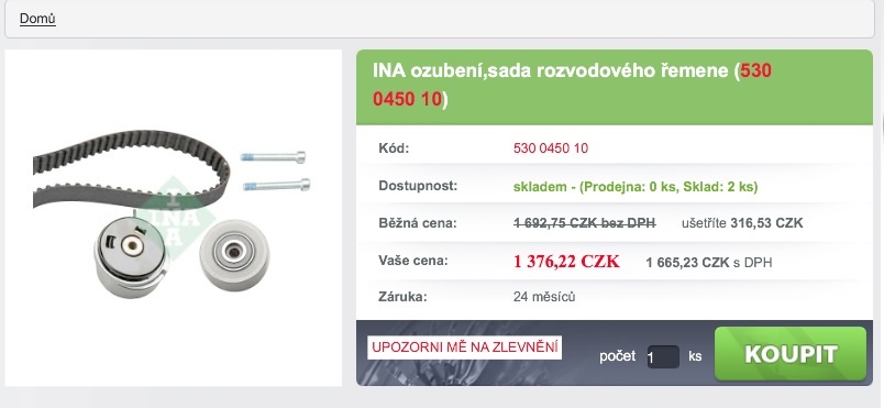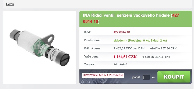 Stane tím myslíš tohle? Ale to má jinej OEM kód, teda pokud je to ono tak s tím už dopředu počítám a včetně řídících ventilů vačky to dělá včetně rozvodový sady za matroš cca. 10T, samozřejmě bez práce ;)