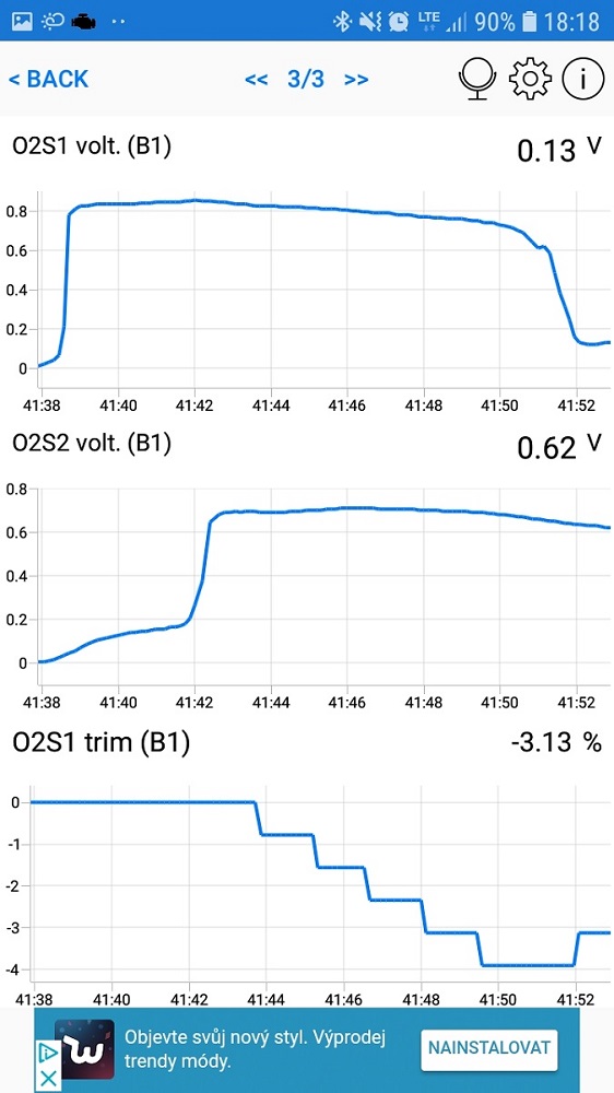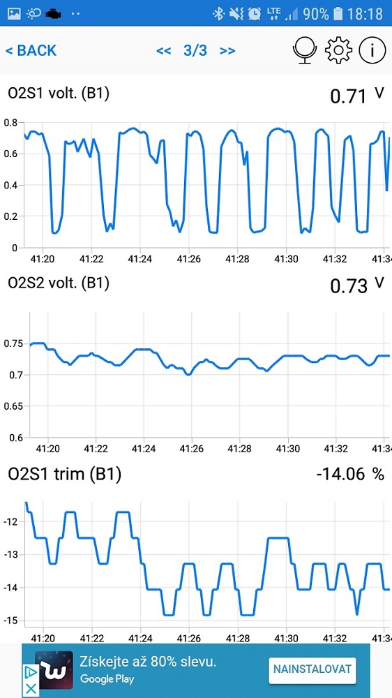 V příloze posílám graf na volnoběh. Pak graf při 4000 ot. A pak graf, když ze 4000ot/min pustím plyn a jede na volno běh.