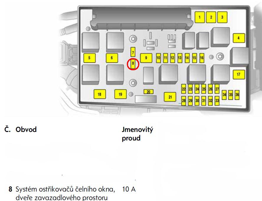 Tím myslí pojistku 10A v motorovém prostru pro zadní dveře - č.8 - viz. obrázek