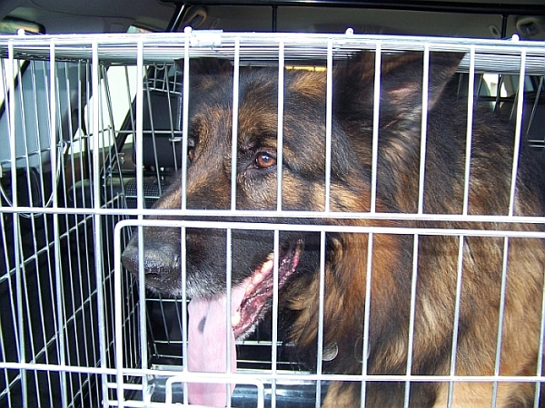 dnes jsme vyzkoušeli novou klec, co dostal hafan k vánocům, je to asi největší klec, co se dá narvat do caravanu ;) (větší jedině na zakázku) pro německýho ovčáka akorát, jestli chete většího psa, tak si kupte větší auto :lol: