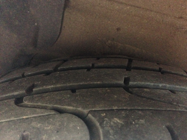 tak prikladam foto, nie je to az tak dobre vidiet ako som si predstavoval, no pozorne oko si vsimne na vnutornej casi pneu znacne opotrebenie. Obidve zadne gumy su vydrate rovnako.