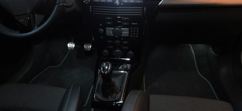 Je to napojený na stropní lampičku (prostřední světlo), takže když se rozsvítí, svítí i prostor dole. Musí se ale najít vhodný místo pro umístění LEDek, protože by jinak zavazel výdech ofukování. Nejmíň místa je u spolujezdce.