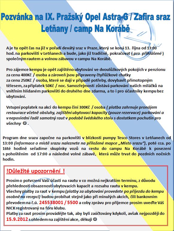 Re: IX. Opel Astra-G / Zafira sraz Praha 13.10.