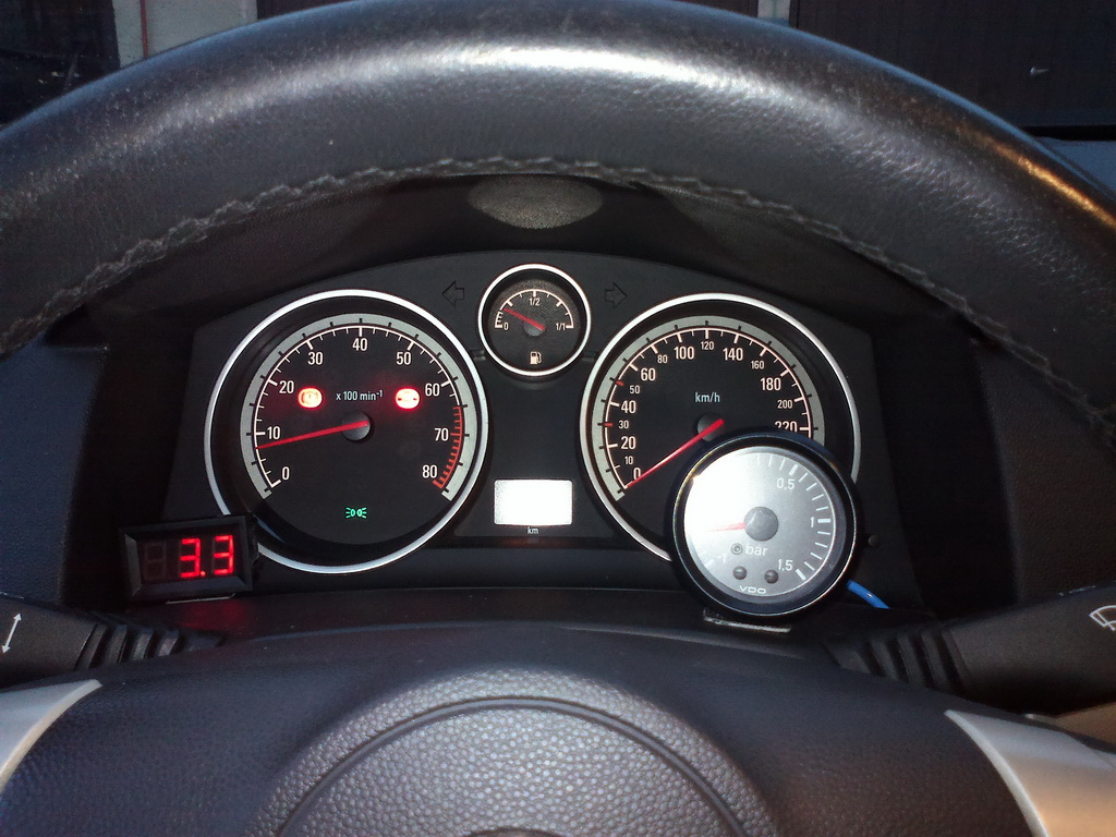 Maly up, nahozeny zakladni budiky, aby z toho bylo normalni auto: tlak turba a oleje