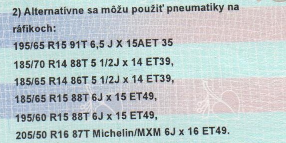 neviem no toto mam napisane v TP presne tomu nerozumiem preco je tam to michelin..ine nemozu byt???...aj na nete som to videl niekde tusim presne toto isteee....