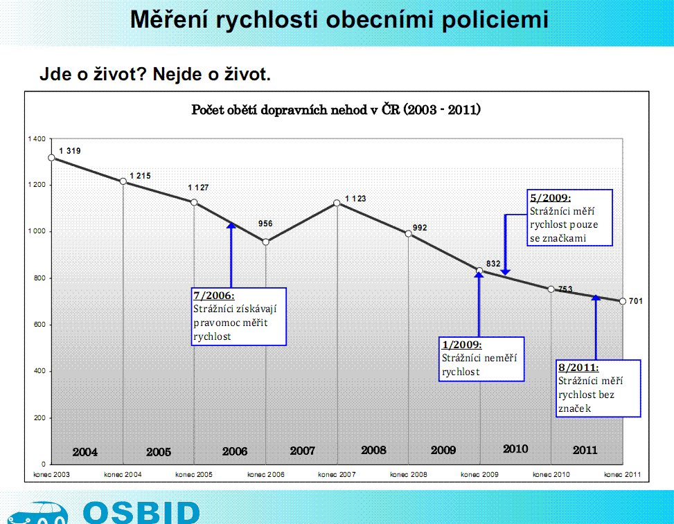 Ano. Na tom grafu je zajimave to, ze za poslednich dvacet let se situace na silnici zhorsila jen v dobe, kdy zaclo mestapo merit a spustil se bodovy system. Je to nahoda?