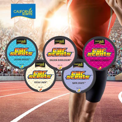 na vybrané vůně California Car Scents tvořící olympijské kruhy po celou dobu trvání her.