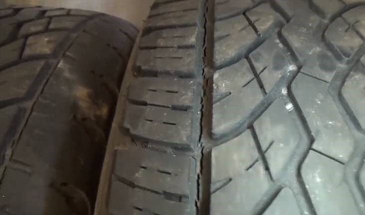A opět nové pneu, tentokrát Dunlop Sport BluResponse. Continentaly byly vynikající, vzorek ještě pořád super, ale všechny čtyři popraskaly ve vzorku ve dvou bočních drážkách kolem dokola, vůbec netuším, jak je to možné... Moc jsem na nich nenajel. Takhle nějak to vypadá - je to jiná pneu, ale popraskání je úplně totožné. Nevíte, čím to může být způsobeno?