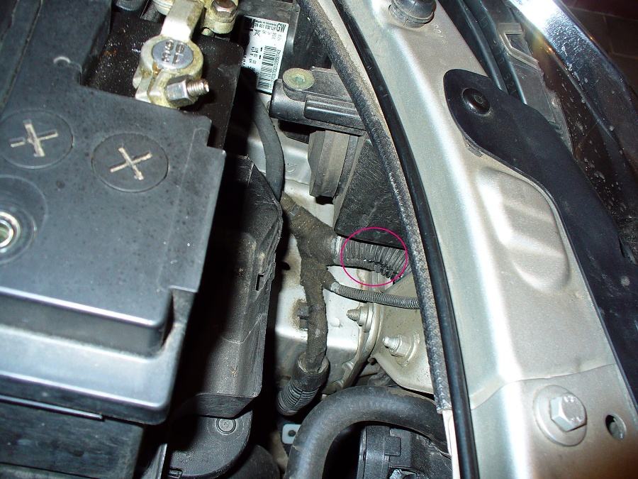 Káblík od čidla vede ve svazku v tom husím krku - je vidět na obr. za baterkou . Vede to dolů k chladiči , kde se to rozbočuje na 3 káblíky - jeden dolů na čidlo a ty dva někam k chladiči ( kam přesně to nebylo vidět ) . Tak snad ti to pomůže ;)