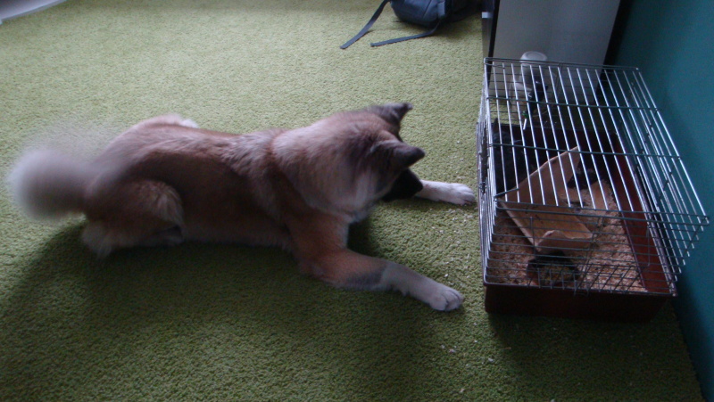 Tady jsou naši dva pohromadě, činčila Jingl a americká akita Aischa...