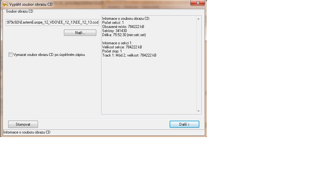 Potom jsem to vypálil pomocí UltraISO, kde jsem zvolil nejnižší rychlost vypalování, a to již v autě fungovalo bez problému vč. českých TMC informací (patřičný soubor jsem samozřejmě nahradil). Vypáleno na klasické 700MB CD Verbatim.
