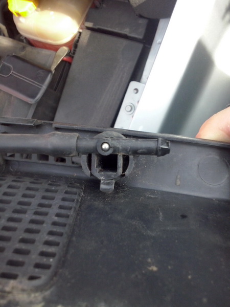 dostaneme krásne oddelené a ľahko prístupné trysky ostrekovačov...demontáž nie je nijak zložitá,poistný jazýček sa odklopí a tryska sa povytiahne tak aby jazýček nezapadol späť,následne za pomoci hrubej sily treba len trysku vyklepnúť von,netreba sa báť poškodenia plastu,nie je totiž ako...vloženie novej ide ľahko a presne zapadne do vytvarovaného miesta...