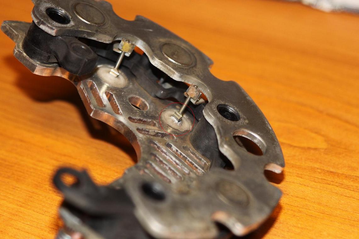 Tady jsou nějaké fotky vadného diodového bloku. Na obrázcích je vidět, jak praská keramická výplň diody, což spůsobuje všechny problémy.