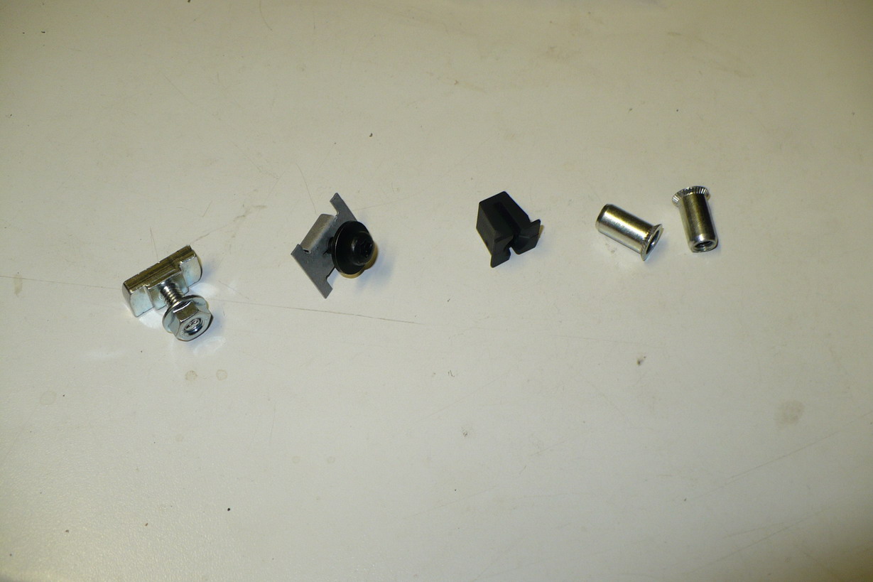 Plastové úchyty co se prodávají na fotce druhé zprava jsou k nepoužití. A deformační vložky se závitem na fotce úplně vpravo používal Opel k montáži plechových krytů. Nevýhodou je , že jsou tam napořád a pokud se něco stane, nedají se měnit. maximálně je odvrtat.