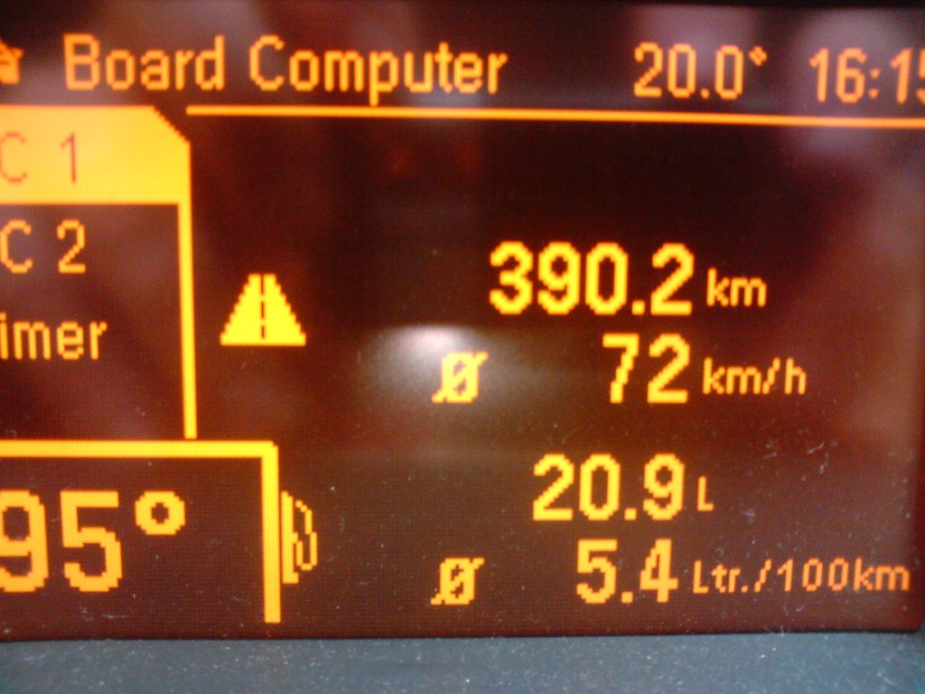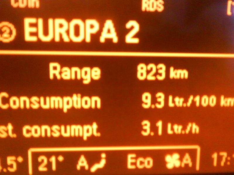 Čo sa týka samotnej spotreby (aj keď som vypaľoval 1x, na ceste domov) tak si myslím, že môžem byť nadmieru spokojný. Je to síce podľa palubáku ( skutočná je o niečo vyššia, okolo 0,4 - 0,5 l) , ale celkom ujde. Auto obsadené tromi osobami.