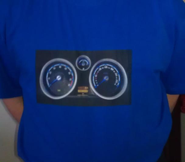 Chtělo by to trefit barvu trika s pozadim okolo těch budíků. A možná bych ten obrázek dal raději na záda ;)