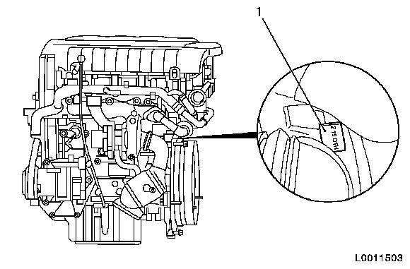 Označení motoru a číslo motoru (1) jsou vyražena na plochém úseku bloku válců ze strany převodovky