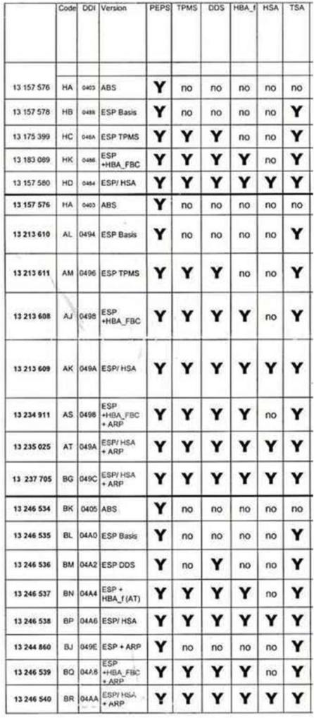 Tak já mám 13 157 575 BE . Měla by podporovat PEPS a TPMS. :x
