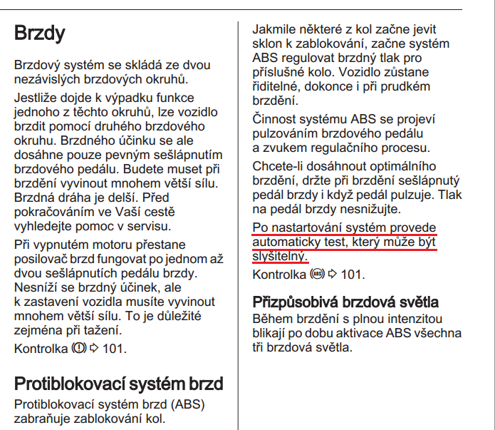 Ano, kontrola ABS .. časem to přestanete vnímat já už to ani neslyším když se nato nezaměřím ..