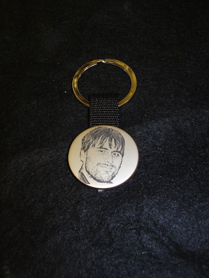 Klíčenka kov+ plast na látkovém poutku.Možno vylaserovat fotku ,logo ,text atd