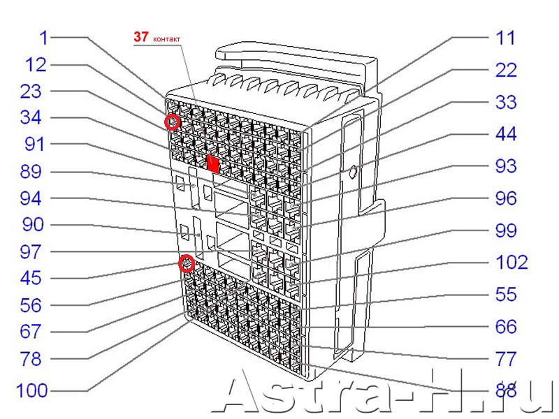 Připojení k 37-pin, pinout aplikovaná na konektoru sám, a je zobrazen na následujícím obrázku. By mělo být provedeno v černé barvě.